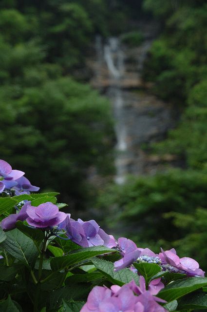 この滝はやはり紫陽花が似合う。